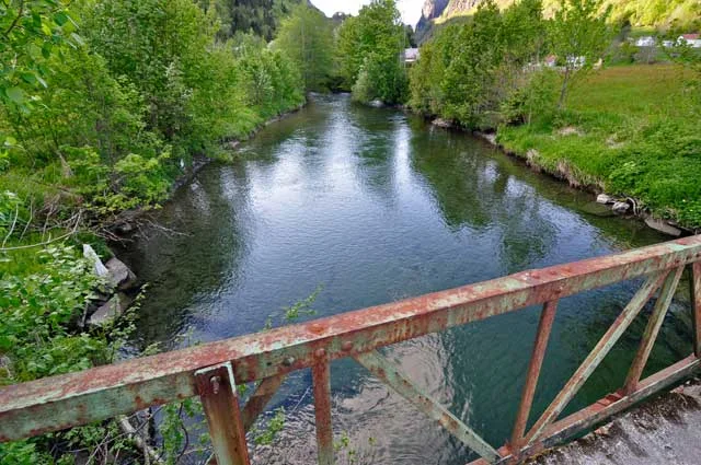 Så var vi ferdige og kan betrakte Bruelva fra en av broene. Glemt noe? Jo det er litt mer. Siste strekket overfor øverste broen er et gjel hvor elva går hvitere. Her er er noen fine plasser opp til fossene som stanser videre vandring. Prøv makkeklysa her på flom!