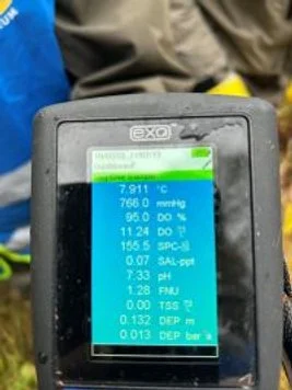 Før vi begynte sjekket vi tilstand på vann med måleinstrument.