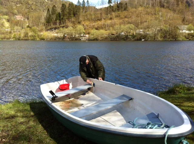 Båten i Grimenvannet er klar til bruk straks over helgen. Reparasjon / fornying av åregafler pågar akkurat nå. For lån av denne må Grimen Camping kontaktes